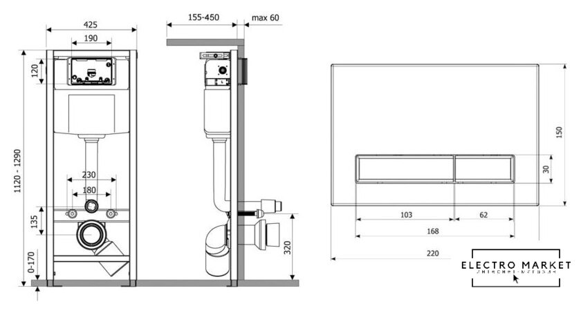 крепление на капитальную стену/на пол/на некапитальную стену, макс. нагрузка 400 кг, однорежимный/двухрежимный/трехрежимный/прерываемый слив, механическое управление, бачок в комплекте, 42.5x129x45 см