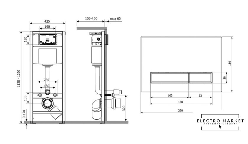 крепление на капитальную стену/на пол/на некапитальную стену, макс. нагрузка 400 кг, двухрежимный слив, механическое управление, бачок в комплекте