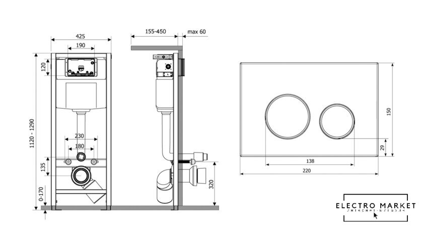 крепление на капитальную стену/на пол/на некапитальную стену, макс. нагрузка 400 кг, двухрежимный слив, механическое управление, бачок в комплекте