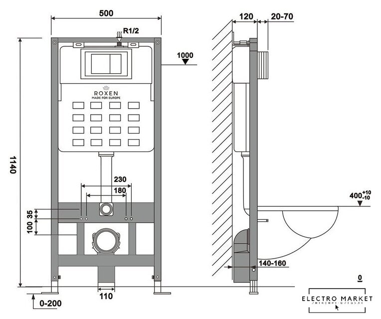 | Отверстия под унитаз | 180 мм, 230 мм |