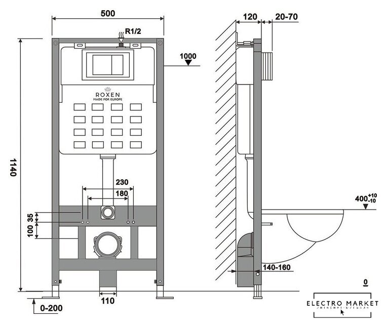 Отверстия под унитаз | 180 мм, 230 мм |