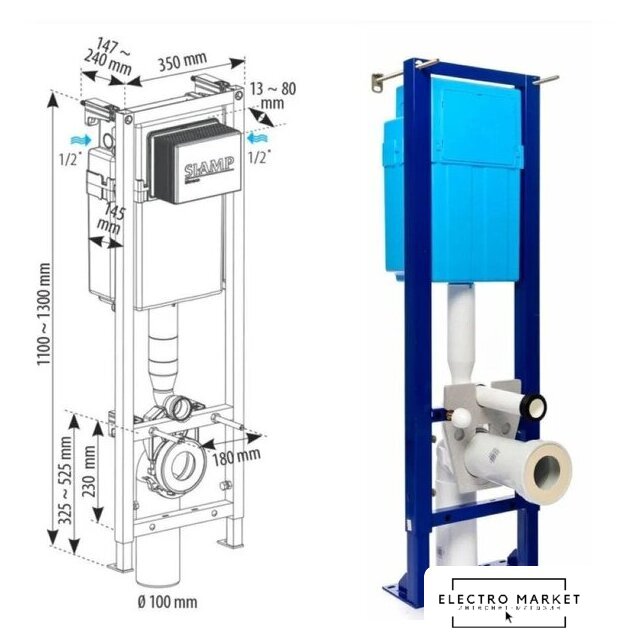 крепление на капитальную стену/на пол/на некапитальную стену, макс. нагрузка 400 кг, двухрежимный слив, механическое управление, бачок в комплекте, 35x110-130x14.7-24 см