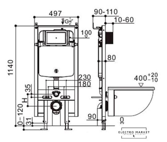 крепление на капитальную стену/на пол, макс. нагрузка 400 кг, двухрежимный слив, механическое управление, бачок в комплекте, 41x111.5x16 см