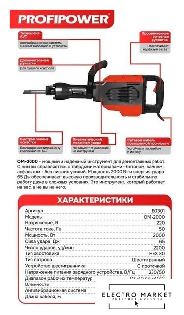 | Частота ударов | 2 200 ударов/мин |