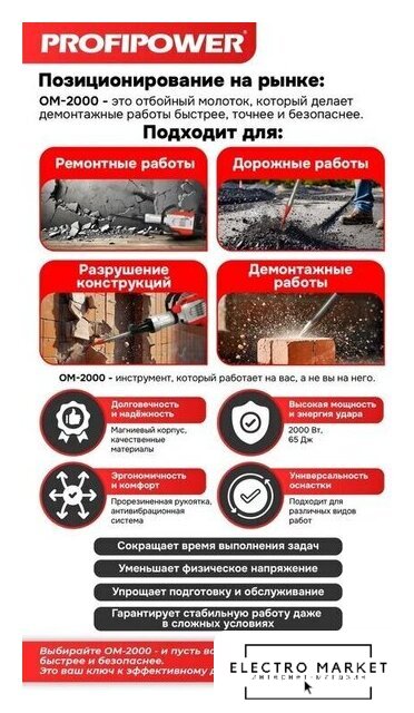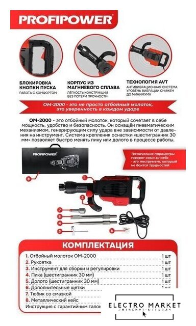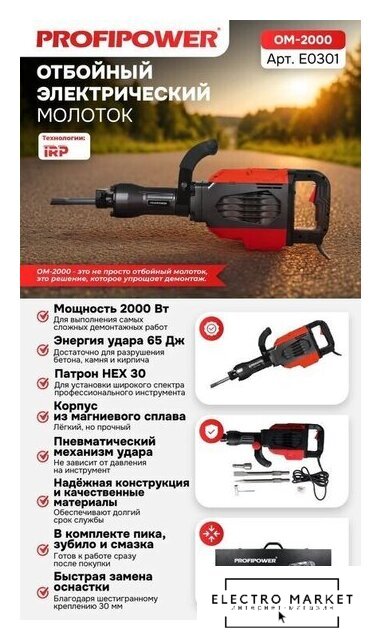 электрический, 1900 Вт, удар 60 Дж, частота 1950 об/мин, 23.8 кг