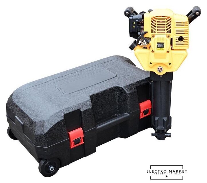 | Комплектация | - Отбойный молоток;- Канистра для топливной смеси;- Смазка для ударного редуктора (60г);- Набор инструмента;- Кейс;- Руководство по эксплуатации;- Упаковка. |