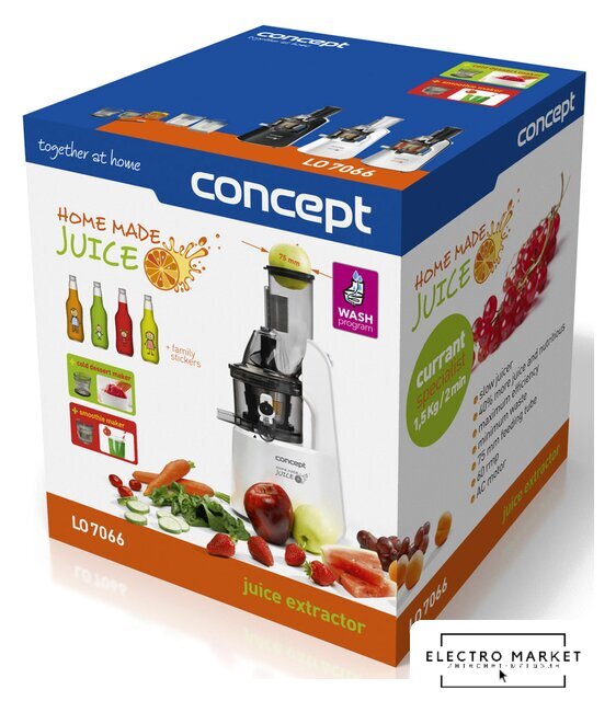 150 Вт, шнековая, отверстие для загрузки: 75 мм, ёмкость для сока