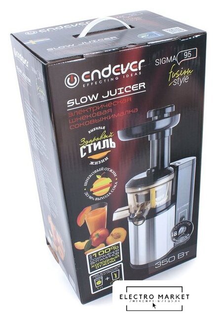 500 Вт, шнековая, отверстие для загрузки: 80 мм, ёмкость для сока