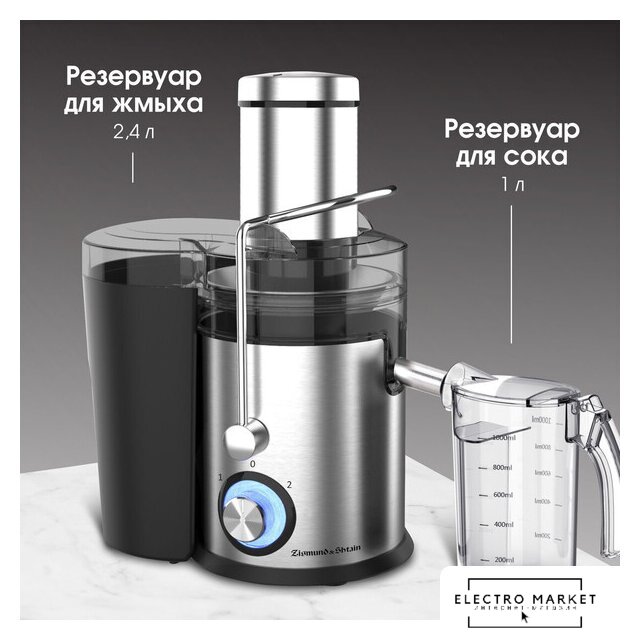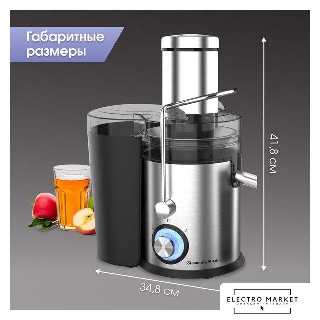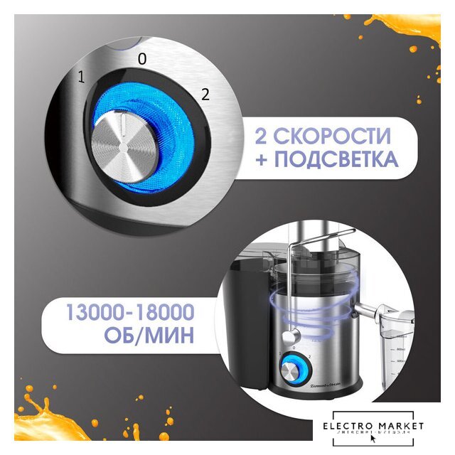 800 Вт, центробежная, отверстие для загрузки: 75 мм, ёмкость для сока