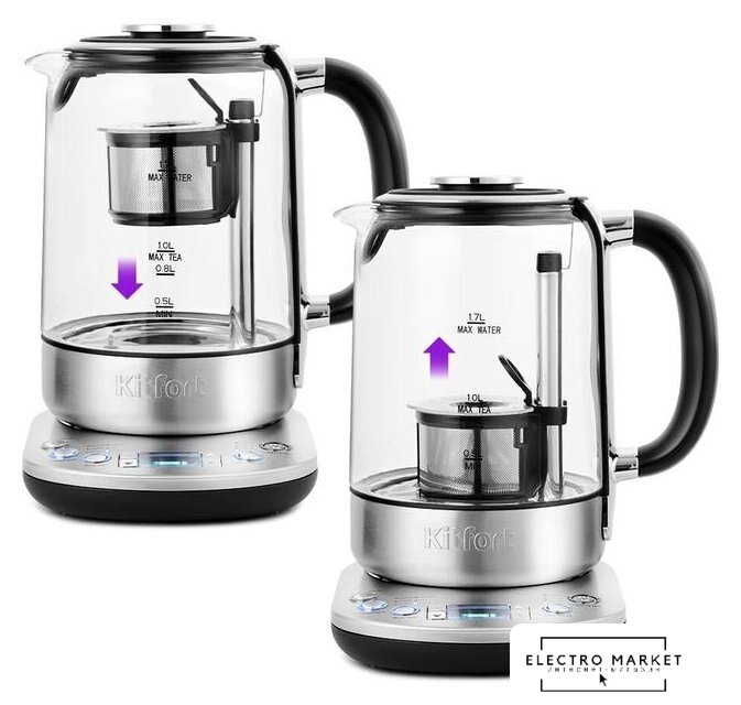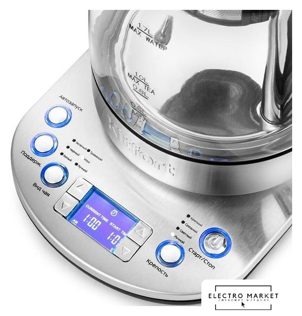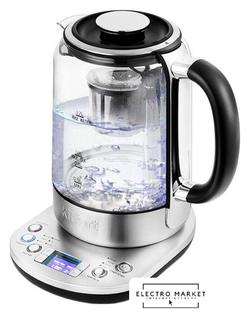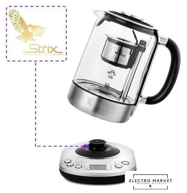 2200 Вт, объем 1.7 л, терморегулятор, цвет нержавеющая сталь/черный