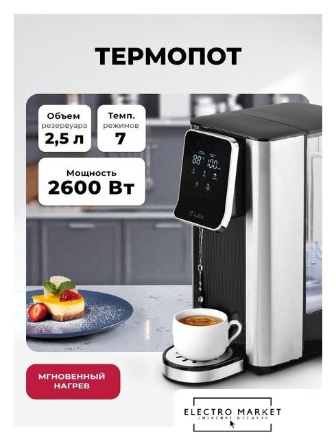2600 Вт, объем 2.7 л, терморегулятор, цвет серебристый/черный