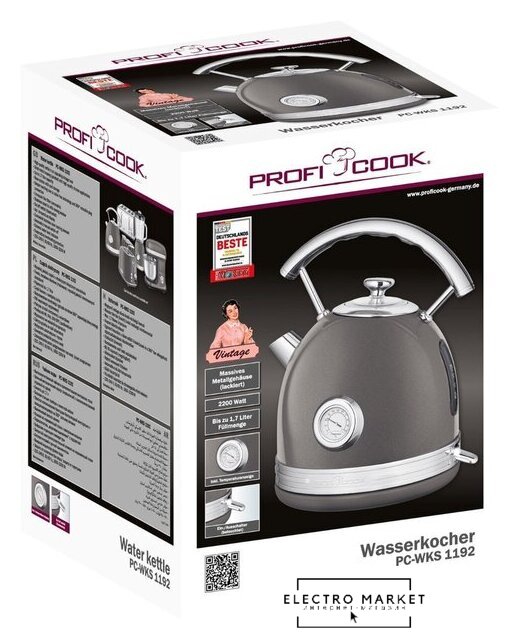 2200 Вт, объем 1.7 л, терморегулятор, цвет нержавеющая сталь/черный