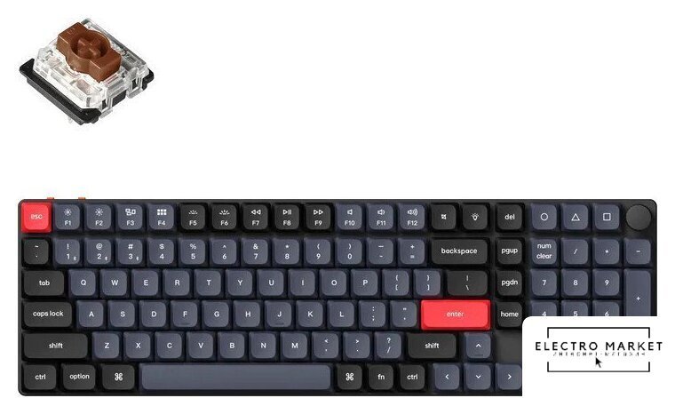 игровая для ПК/для компьютеров Apple/для iPad/для устройств Android, механическая, Gateron Low Profile Blue 2.0, ход тактильный/с кликом/низкопрофильный, пластик с металлической рамкой, интерфейс подключения - USB-A/радио/Bluetooth, цвет серый