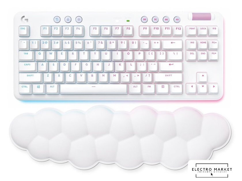 игровая для ПК/для компьютеров Apple/для iPad/для устройств Android, механическая, Gateron Low Profile Brown 2.0, ход тактильный/тихие/низкопрофильный, пластик с металлической рамкой, интерфейс подключения - USB-A/радио/Bluetooth, цвет белый