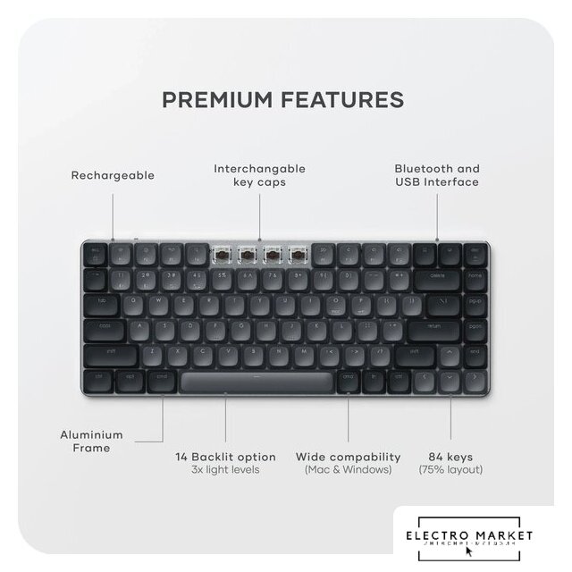 стандартная для ПК/для компьютеров Apple, механическая, Kailh Box White, ход тактильный, полностью металлическая, интерфейс подключения - USB/радио, подсветка, цвет белый