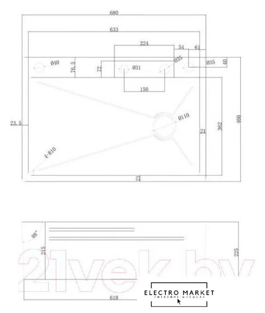 Длина мойки | 68 см |