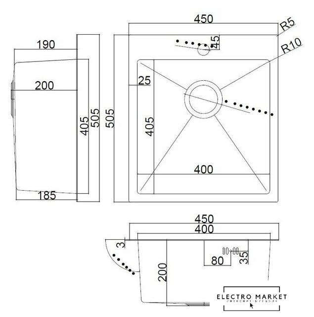 Длина мойки | 45 см |