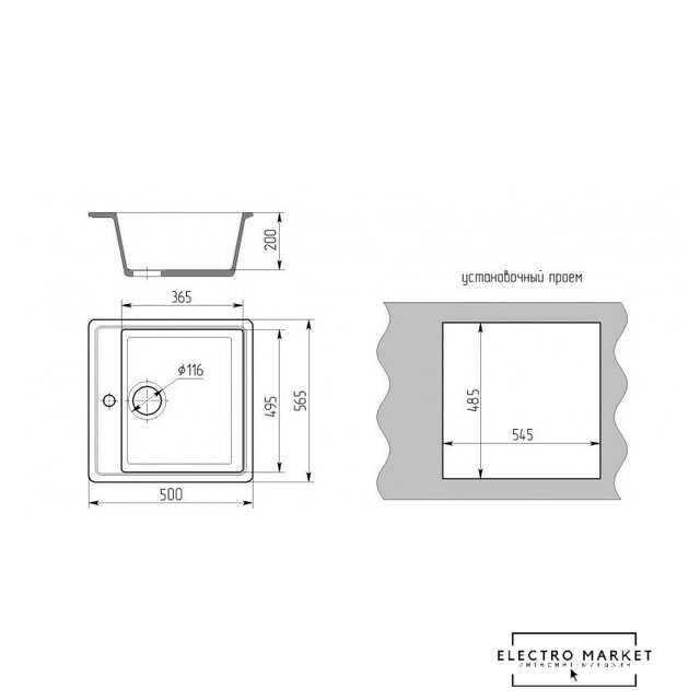 врезная на столешницу, искусственный камень, фактура: матовая, размеры: 47.5x47.5 см, глубина чаши: 18.5 см, в шкаф шириной от 40 см