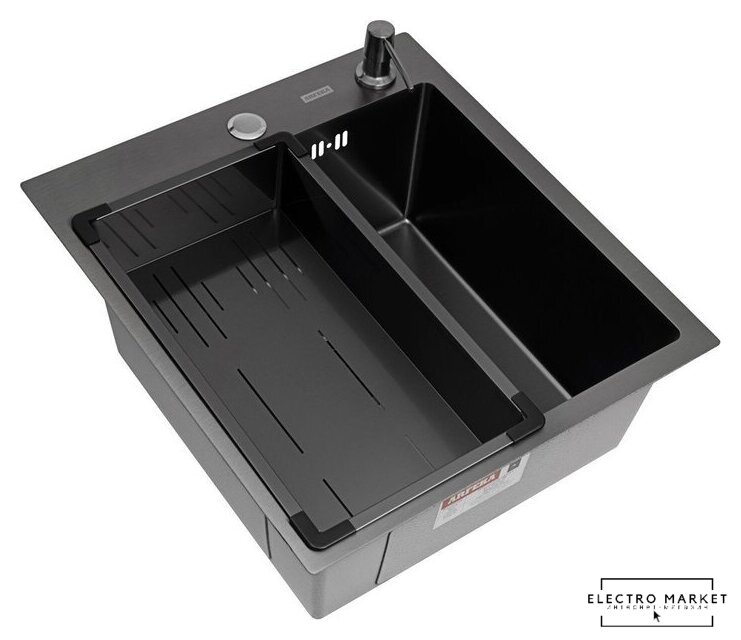Комплектация | Кухонная мойка, коландер, дозатор для жидкого мыла, сливная арматура |
