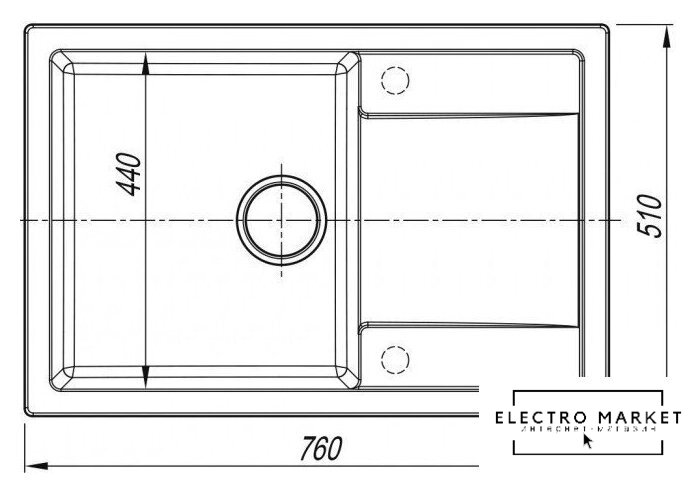 врезная на столешницу, искусственный камень, размеры: 76x51 см, в шкаф 60 см