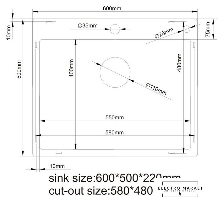 | Длина мойки | 60 см |