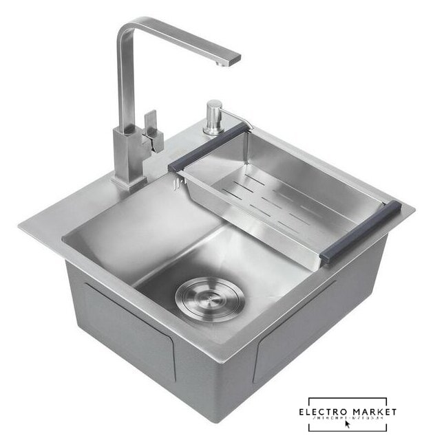 Комплектация | 1. Сифон с гофрой 2. Коландер из нержавеющей стали 3. Дозатор для моющих средств |