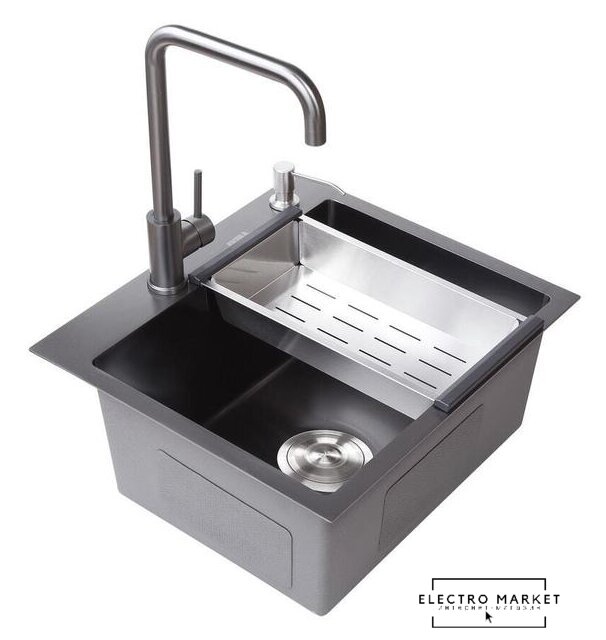 Комплектация | 1. Сифон с гофрой 2. Коландер из нержавеющей стали 3. Дозатор для моющих средств |