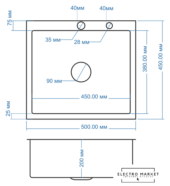 Ширина мойки | 50 см |