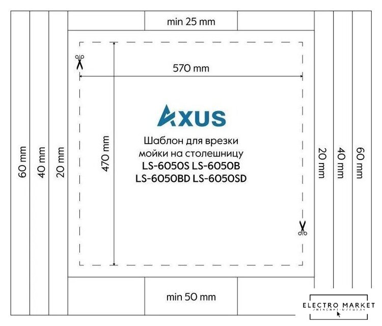 врезная вровень со столешницей, нержавеющая сталь, размеры: 50x60 см