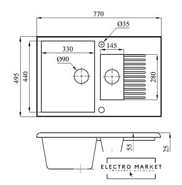 врезная на столешницу, искусственный камень, размеры: 61x50 см, глубина чаши: 20 см, в шкаф шириной от 60 см