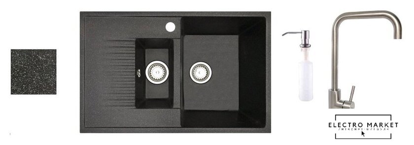 Комплектация | смеситель, кухонная мойка, дозатор для жидкого мыла |