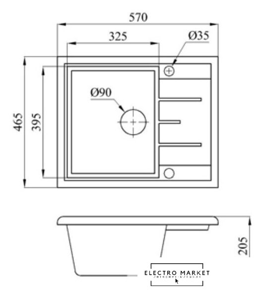 врезная на столешницу, искусственный камень, размеры: 42.5x48.5 см, глубина чаши: 18 см, в шкаф шириной от 45 см
