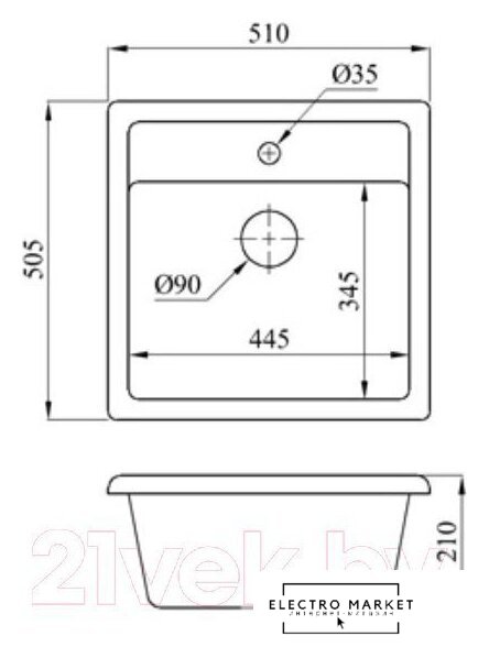 врезная на столешницу, гранит, фактура: матовая, размеры: 51x50.5 см, глубина чаши: 19 см, в шкаф шириной от 50 см
