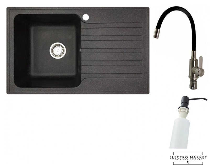 | Комплектация | смеситель (1 шт.), кухонная мойка (1 шт.), дозатор для жидкого мыла (1 шт.) |