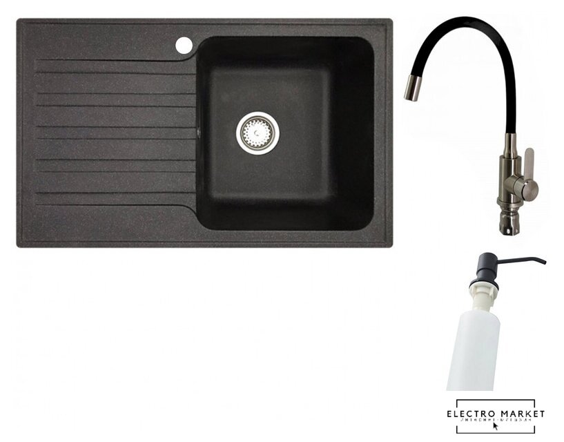 Кухонная мойка БелЭворс Styl R + смеситель W74004-2 + дозатор L405F (черный)
