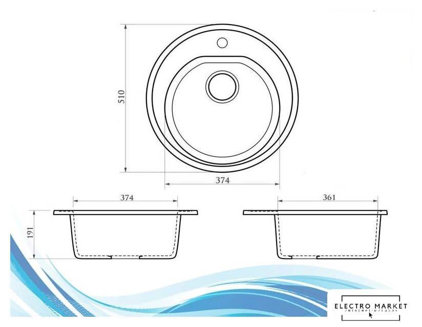 врезная на столешницу, искусственный камень, фактура: матовая, размеры: 51x60 см, глубина чаши: 20 см, в шкаф шириной от 60 см, клапан-автомат