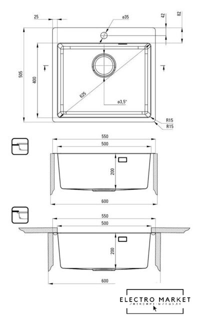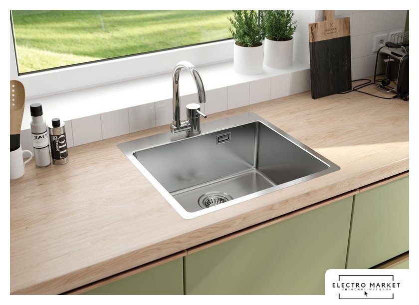 врезная на столешницу, нержавеющая сталь, размеры: 59x51 см, глубина чаши: 19 см, в шкаф шириной от 60 см