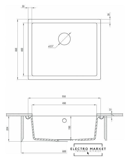 Диаметр сливного отверстия | 3.5" |