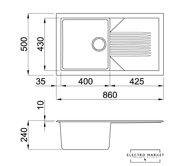 врезная под столешницу, искусственный камень, размеры: 36.5x44 см, глубина чаши: 20 см, в шкаф шириной от 45 см, клапан-автомат