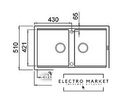 врезная под столешницу, кварц, размеры: 73x45.5 см, глубина чаши: 22 см, в шкаф шириной от 80 см