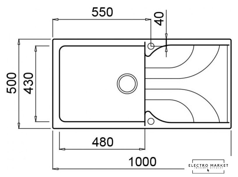 врезная под столешницу, искусственный камень, размеры: 55x46 см, глубина чаши: 19 см, в шкаф шириной от 60 см