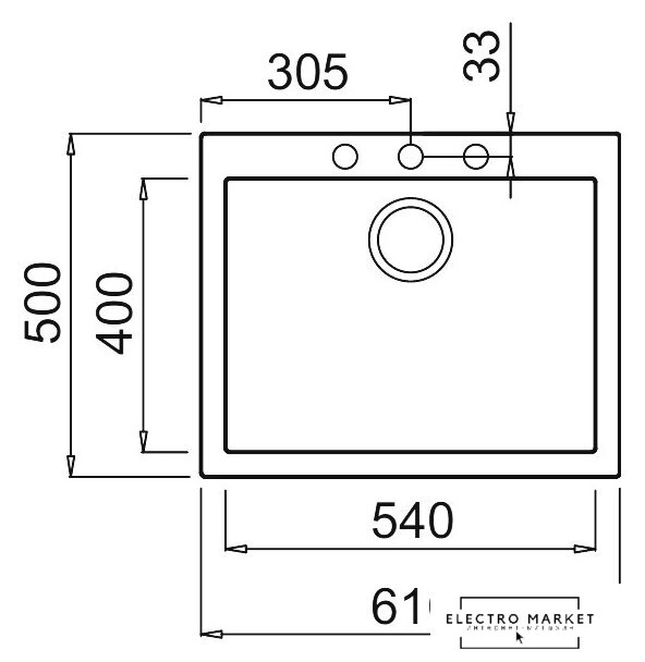 врезная на столешницу, нержавеющая сталь, фактура: матовая, размеры: 60x48 см, глубина чаши: 22 см