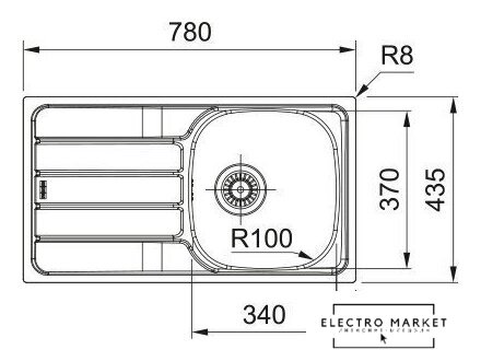 врезная на столешницу, нержавеющая сталь, фактура: матовая, размеры: 60x48 см, глубина чаши: 22 см