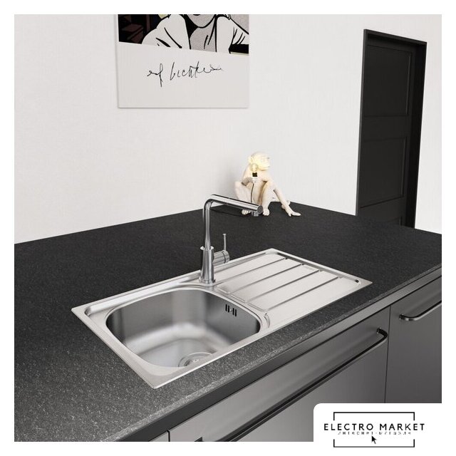 врезная на столешницу/врезная вровень со столешницей/врезная под столешницу, нержавеющая сталь, фактура: полированная, размеры: 50x75 см, глубина чаши: 22 см, в шкаф шириной от 80 см