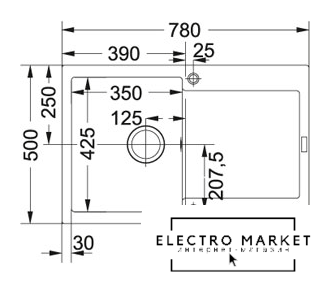 врезная на столешницу/врезная вровень со столешницей, искусственный камень, размеры: 78x50 см, глубина чаши: 22 см, в шкаф шириной от 60 см, клапан-автомат
