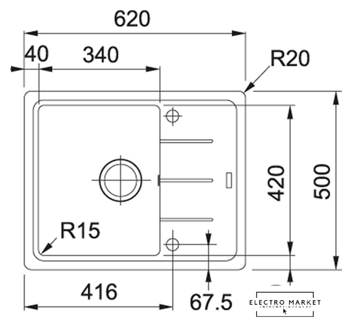 врезная на столешницу, искусственный камень, размеры: 62x50 см, в шкаф 45 см