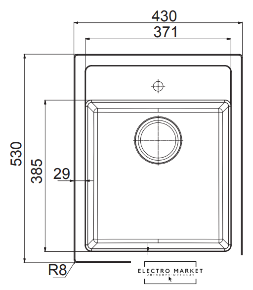 врезная на столешницу, нержавеющая сталь, фактура: матовая, размеры: 51x51 см, глубина чаши: 20 см, в шкаф шириной от 60 см
