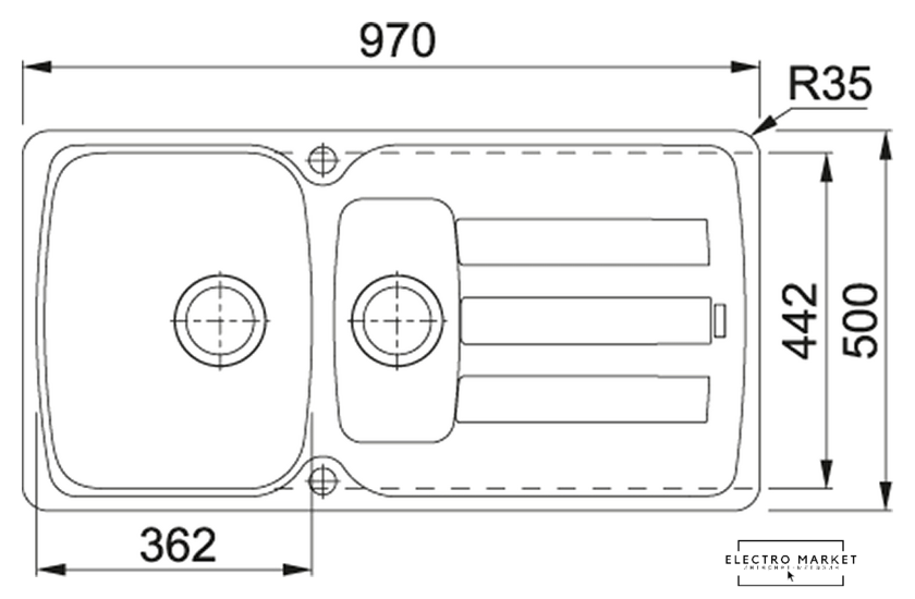врезная на столешницу, искусственный камень, размеры: 93x51 см, глубина чаши: 18 см, в шкаф шириной от 90 см