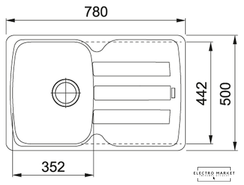 врезная на столешницу, искусственный камень, размеры: 78x50 см, в шкаф 45 см