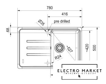 врезная на столешницу, искусственный камень, размеры: 51x50 см, глубина чаши: 24.5 см, в шкаф шириной от 50 см